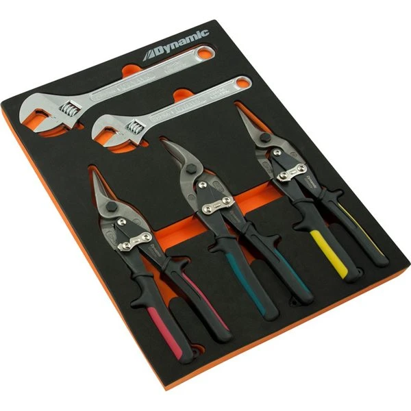 Dynamic Tools 6-Piece Aviation Snip & Adjustable Wrench Set With Tool Organizer