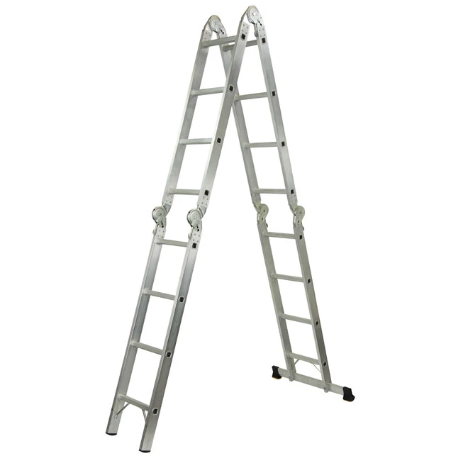 The Featherlite(TM) multi-position articulating ladder 4, 6 and 8-ft can a step, extension or scaffold. The stabilizer bar provides stability. Compact and easy to transport. Made of aluminum. Grade 1A. Load capacity 300 lb (CSA / ANSI). 1-year warranty against manufacturer defect.