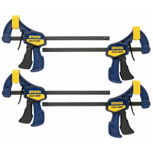 - Irwin Quick-Grip 4-pack of 6-in clamps is ideal for securing materials for sawing, drilling and positioning work for fastening