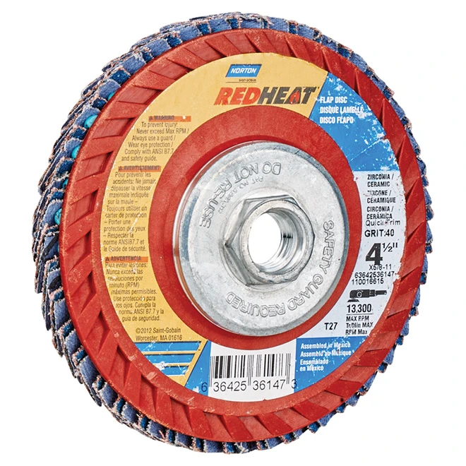 Norton RedHeat Type 27 Ceramic And Zirconia Abrasive Flap Disc – 4 1/2-in Dia – 5/8-11-in Arbor – 40 Grit