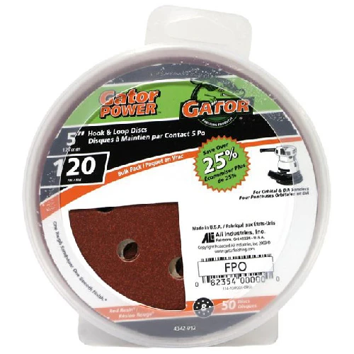 Rust-Oleum Gator Gatorpower Hook And Loop Sanding Discs – 5-in Dia – 8 Holes – 120 Grit – 50 Per Pack