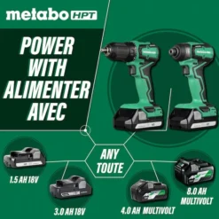 Metabo HPT 18V Cordless Impact Driver And Drill Kit With Lithium-Ion Batteries And Charger